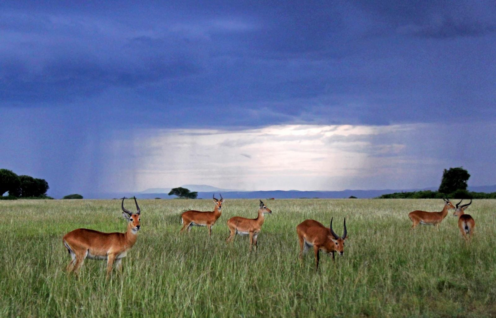 Queen Elizabeth National Park is een wildrijk gebied met vochtige graslanden. Hier leeft de Oegandese kob,