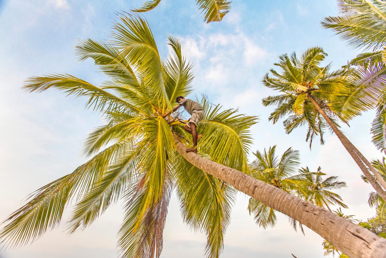 Local beklimt palmboom op de Malediven. Foto: Louise ten Have