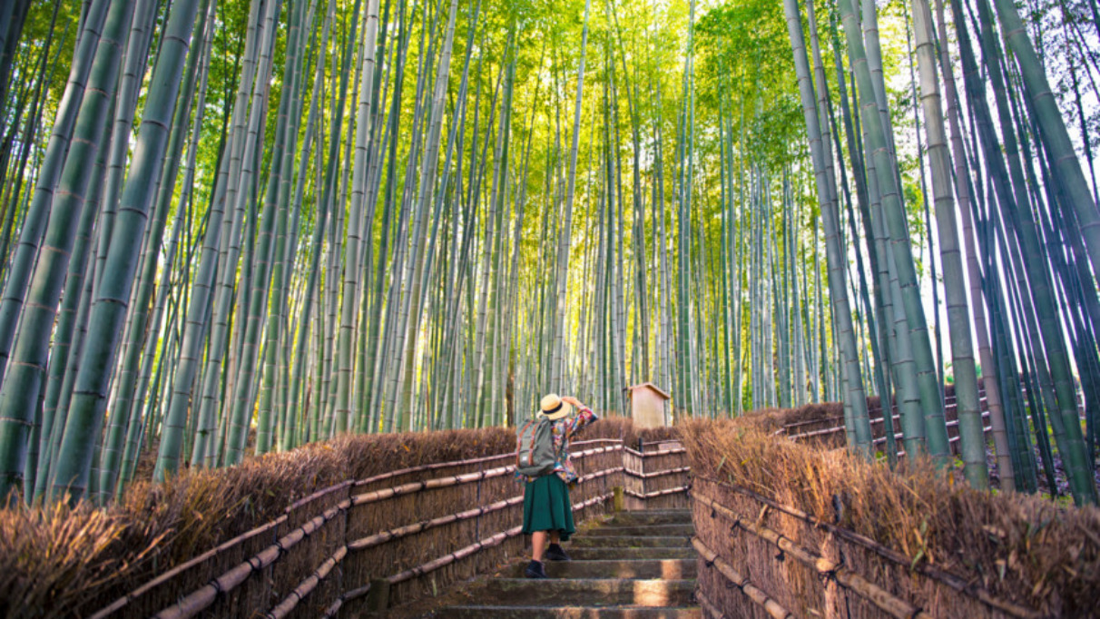 Het bamboebos van Arashiyama in het Japanse Kioto werd aangelegd als akoestische rustplek. Maar door de grote stroom bezoekers is die rust inmiddels ver te zoeken. Gelukkig vind je ook elders in de stad bamboebossen. Zo tref je op het terrein van de indrukwekkende Adashino Nenbetsujitempel eveneens een bamboebos (afgebeeld) aan, dat vele malen rustiger en minstens zo pittoresk is.