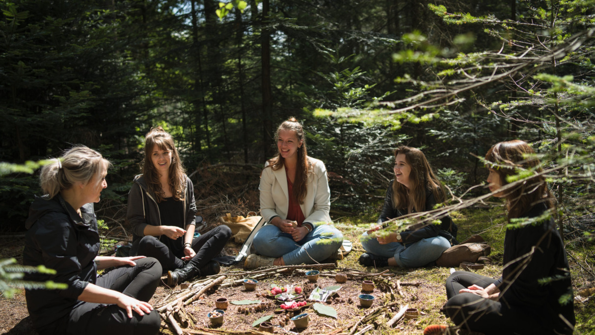 In een kring staan we op het bospad, ogen gesloten. In eerste instantie voel ik me een beetje gedesoriënteerd, zo midden in het bos met mijn ogen dicht. ‘Luister eens naar alle geluiden om je heen,’ moedigt Kat ons aan. ‘Wat hoor je allemaal?’ Ik pers mijn oogleden op elkaar en luister bewust. Nu ik mijn best doe, merk ik, hoor ik ineens veel méér dan alleen vogels. Ik hoor het geruis van de wind, het gekraak van takjes en het gezoem van insecten. Een zacht briesje kietelt mijn vingers. Zo staan we een tijdje.