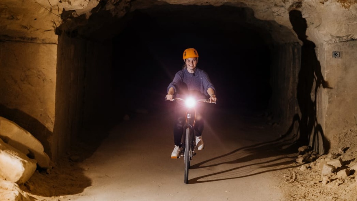 Het mergelgrottenstelsel is óók te verkennen per fiets. Foto: Cuno de Bruin