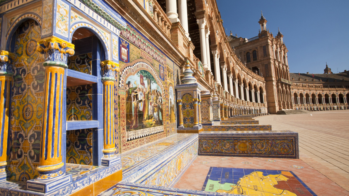Al meer dan zeventig jaar rijdt een rechtstreekse trein van Barcelona Sants naar Sevilla − en sinds enkele jaren ook door naar Cádiz, aan de Atlantische Oceaan. Deze Torre del Oro, vernoemd naar een middeleeuwse toren in Sevilla, belooft een reis van ruim dertien uur door prachtige en veelal lege Spaanse landschappen, vol culturele rijkdom en adembenemende vergezichten. Het eerste deel van de route gaat door glooiende heuvels begroeid met olijfbomen en wijngaarden. Het heldere blauw van de Middellandse Zee glinstert in de verte terwijl pittoreske dorpjes en historische ruïnes voorbijflitsen. Na Valencia ga je echt off the beaten track en rijdt de trein zo’n drie uur door dorre, lege binnenlanden voordat je Andalusië bereikt. Hier word je getrakteerd op dramatische contrasten, van hooggebergten tot uitgestrekte vlaktes bezaaid met zonnebloemen. Ook passeer je charmante witgekalkte dorpjes die zich vastklampen aan de heuvels.