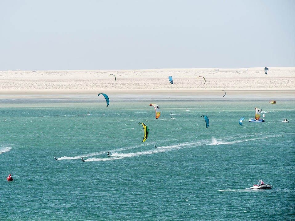 Je zou de Westelijke Sahara het grootste stuk niemandsland op aarde kunnen noemen. Een groot gedeelte van het gebied wordt bezet en bestuurd door Marokko, maar deze annexatie wordt internationaal niet erkend. Bovendien is de bevolkingsdichtheid extreem laag; in het gebied, dat even groot is als Groot-Brittannië, wonen slechts zeshonderdduizend mensen. Oprecht een blinde vlek dus. Des te gekker is het dat er langs de kust een opkomende badplaats ligt: Dakhla. Deze relaxte stad ligt aan een veertig kilometer lange baai (meestal aangeduid als lagune) en is omringd door zandduinen die overgaan in woestijn. Door de driehonderd dagen wind per jaar, de aangename watertemperatuur en de gunstige windrichting is de ‘lagune’ in trek onder wind- en kitesurfers. Kortom: dé plek om te (leren) surfen, of gewoon lekker te luieren buiten de massa om. Er gelden geen noemenswaardige veiligheidsrisico’s (code geel).