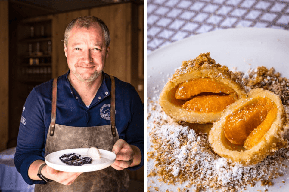 Links: Chef Davor Ninic van Gasthof Goldgasse is trots op zijn goedgelukte Salzburger Nockerl, soufflés die symbool staan voor de bergen rondom de stad Salzburg.