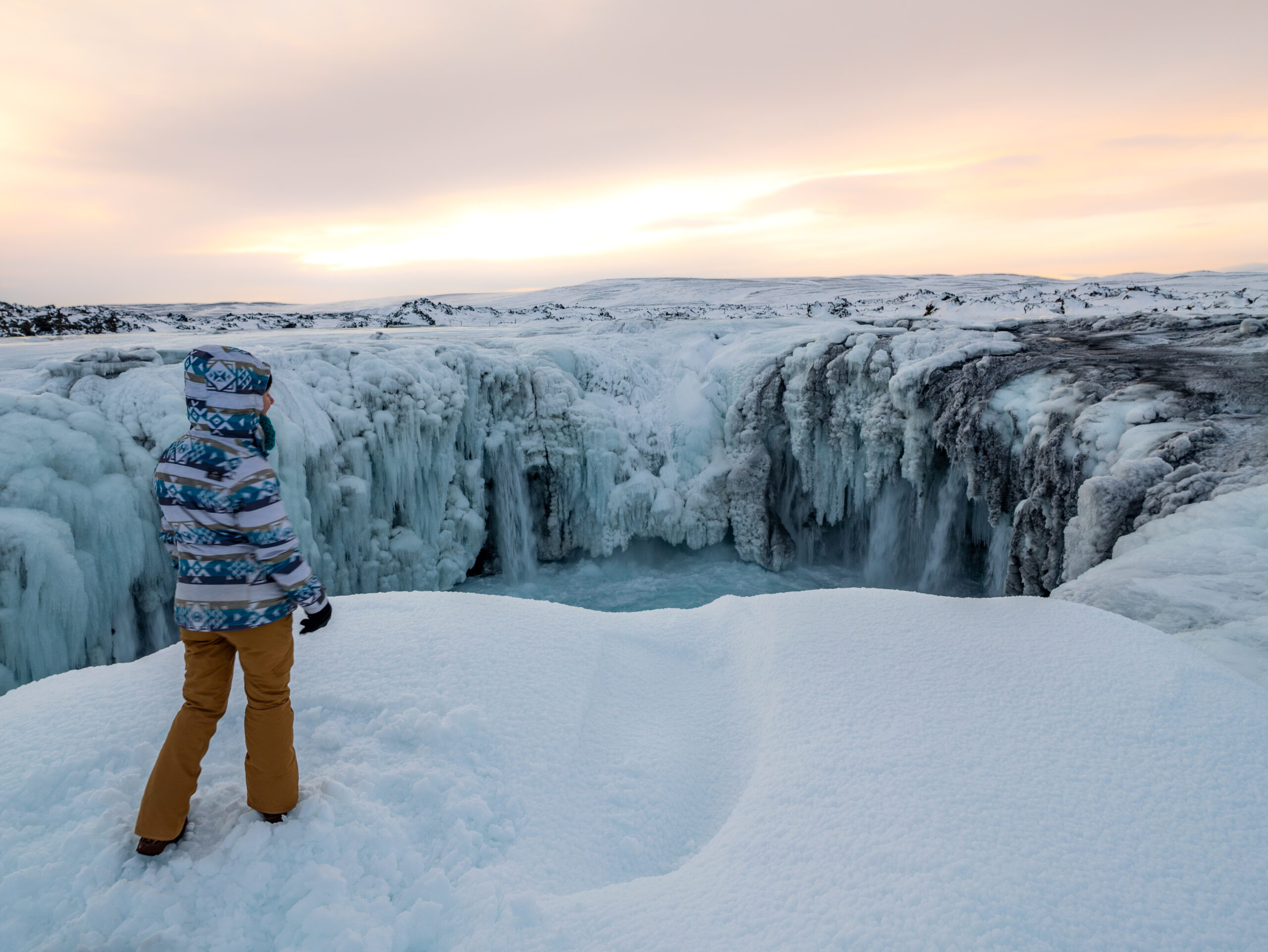 Yalck vertelt: ‘Iedereen kent de Golden Circle in IJsland en ook het noorden wordt steeds populairder. In het Hoge Noorden, op zo’n 45 minuten aan gravelroad verwijderd van de ringweg, ligt Hrafnabjargafoss. In de winter is het alleen te bereiken per superjeep waarbij je een keukentrapje nodig hebt om naar binnen te klauteren! Kruipend over het ijs om niet het risico te lopen erdoor te zakken bereikten we dit fantastische uitzichtpunt, terwijl het poollicht de lucht om elf uur sochtends nog steeds roze kleurde.’ Volg Yalck op Instagram.