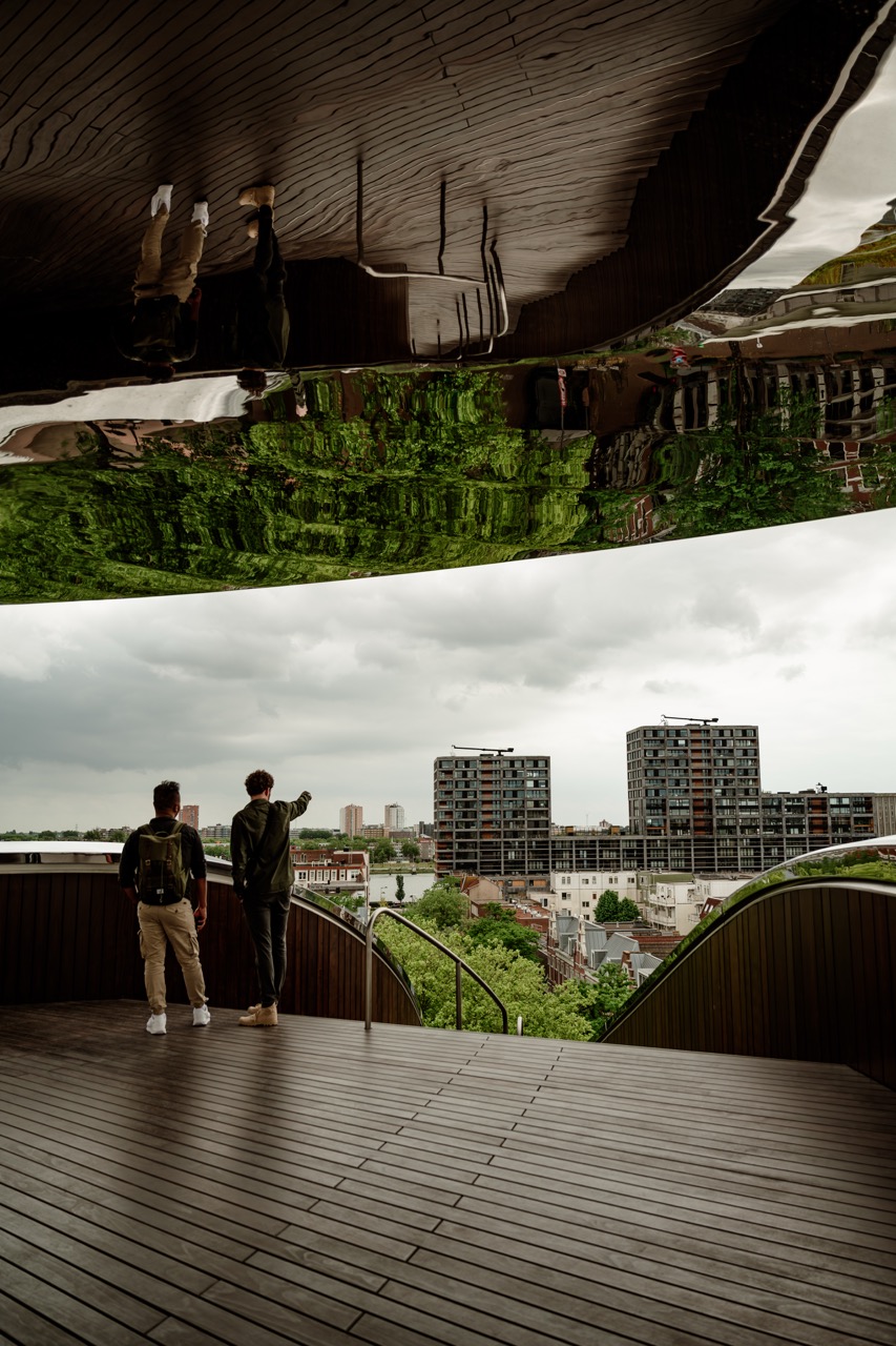Prisca vertelt: ‘Rotterdam is een icoon rijker. Bovenop de voormalige Fenixloods prijkt een grote, gedraaide uitkijktoren. Vanaf de oren kijk je uit over de Rijnhaven, waar watertaxi’s kriskras door het water varen en de patrouillevaartuigen van het havenbedrijf hun rondes maken. Tussen de gebouwen door zie je de Erasmusbrug liggen en aan de overkant van de Nieuwe Maas steekt de Euromast boven de stad uit. Door de draaiing van de toren verandert je uitzicht voortdurend. Aan de ene kant zie je de skyline van Rotterdam, aan de andere kant ligt de SS Rotterdam als opvallend herkenningspunt. Dit voormalig stoomschip bracht ooit duizenden passagiers naar de overkant van de oceaan. Hier op Katendrecht komt alles samen: de bedrijvigheid op het water, het uitzicht op de stad, en de herinnering aan de mensen die vanaf deze plek vertrokken.’ Volg Prisca op Instagram.