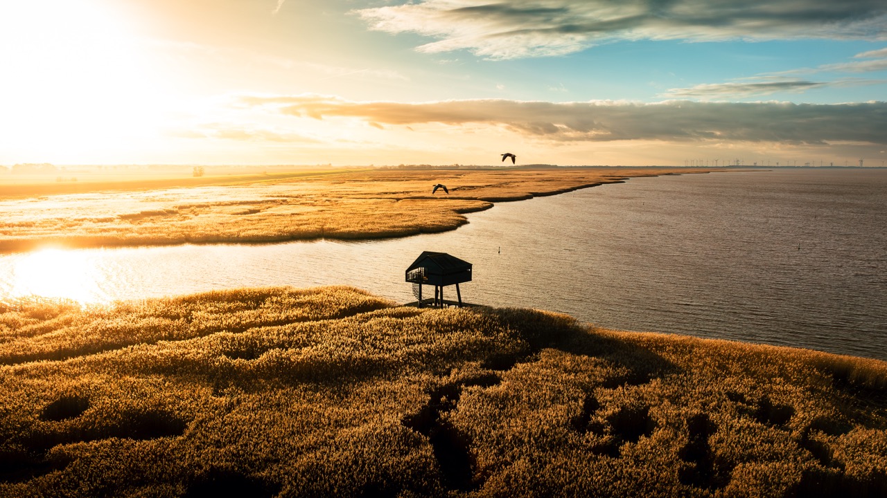 Marius vertelt: ‘Aan de rand van Groningen, vlak bij het dorpje Nieuwe Statenzijl, loopt een houten vlonderpad dwars door het kwelderlandschap richting de Kiekkaaste. Deze bijzondere vogelhut is de enige in Nederland die buiten de dijk staat, letterlijk in het grensgebied tussen land en wad. Terwijl je over het pad loopt, hoor je de wind door het riet en zie je de lucht weerspiegeld in het ondiepe water. Vanaf de hut kijk je uit over de Dollard, een ruig en voortdurend veranderend natuurgebied waar eb en vloed het landschap blijven vormen. Trekvogels rusten hier uit tijdens hun reis tussen noord en zuid. De wandeling naar de Kiekkaaste is magisch. Elke stap brengt je verder weg van het vasteland en dichter bij de stilte van de natuur. Een plek waar je letterlijk kunt zien hoe de zee komt en gaat.’ Volg Marius op Instagram.