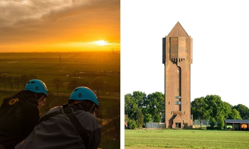 De watertoren in het Overijsselse Lutten is een van de meest in het oog springende gebouwen van de provincie. Gerrit en Frieda Rieks kochten het industriële erfgoed in 2008 en vormden het om tot een groepsaccommodatie. Als je dacht dat het gebouw zelf al imposant was, moet je het uitzicht van boven eens zien. De avontuurlijke gast kan er zelfs het randje opzoeken, door naar beneden te abseilen. Wij bedanken vriendelijk. We snappen wel waarom deze locatie in trek is; de kamers zijn smaakvol, fleurig en comfortabel ingericht. En dan is er natuurlijk nog die onmiskenbare vorm, waardoor je je er constant van bewust bent dat je in een toren slaapt. De toren ontvangt tegenwoordig alleen nog maar in het weekend en tijdens de vakanties grotere groepen. Daarnaast staat de accommodatie garant voor heisessies voor bedrijven.