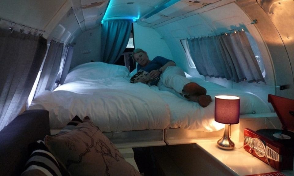 Op het terrein van de Vreemde Vogel bij Vlaardingen kun je logeren in een afgedankt vliegtuig.