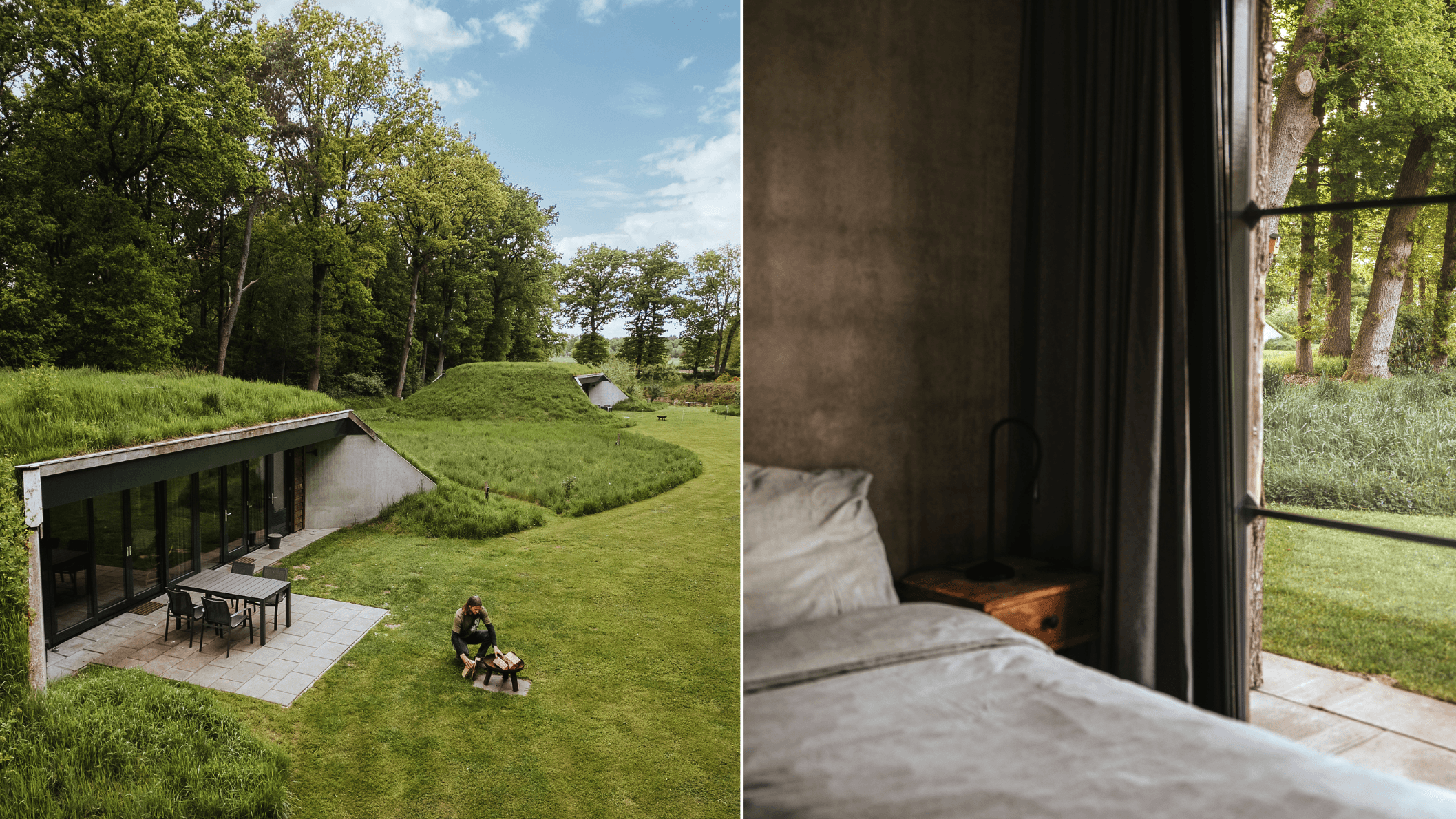 In Hellendoorn slaap je niet óp de Sallandse Heuvelrug, maar erin! Vier van de vijf appartementen van In de Heuvelrug gaan letterlijk op in het glooiende landschap, met een fijne balans tussen stoere betonnen muren en groene daken waar gras en vingerhoedskruid op groeien. Begin je dag met eieren rapen voor het ontbijt. Voor het diner mag je zelf groente plukken uit de moestuin, de trots van eigenaars Annie en Hennie. Afhankelijk van het seizoen haal je hier rabarber, bessen, sla, radijsjes, broccoli of aardappelen. De stijlvol ingerichte appartementen bieden plaats aan vier tot zes personen (vanaf € 552 voor drie nachten).
