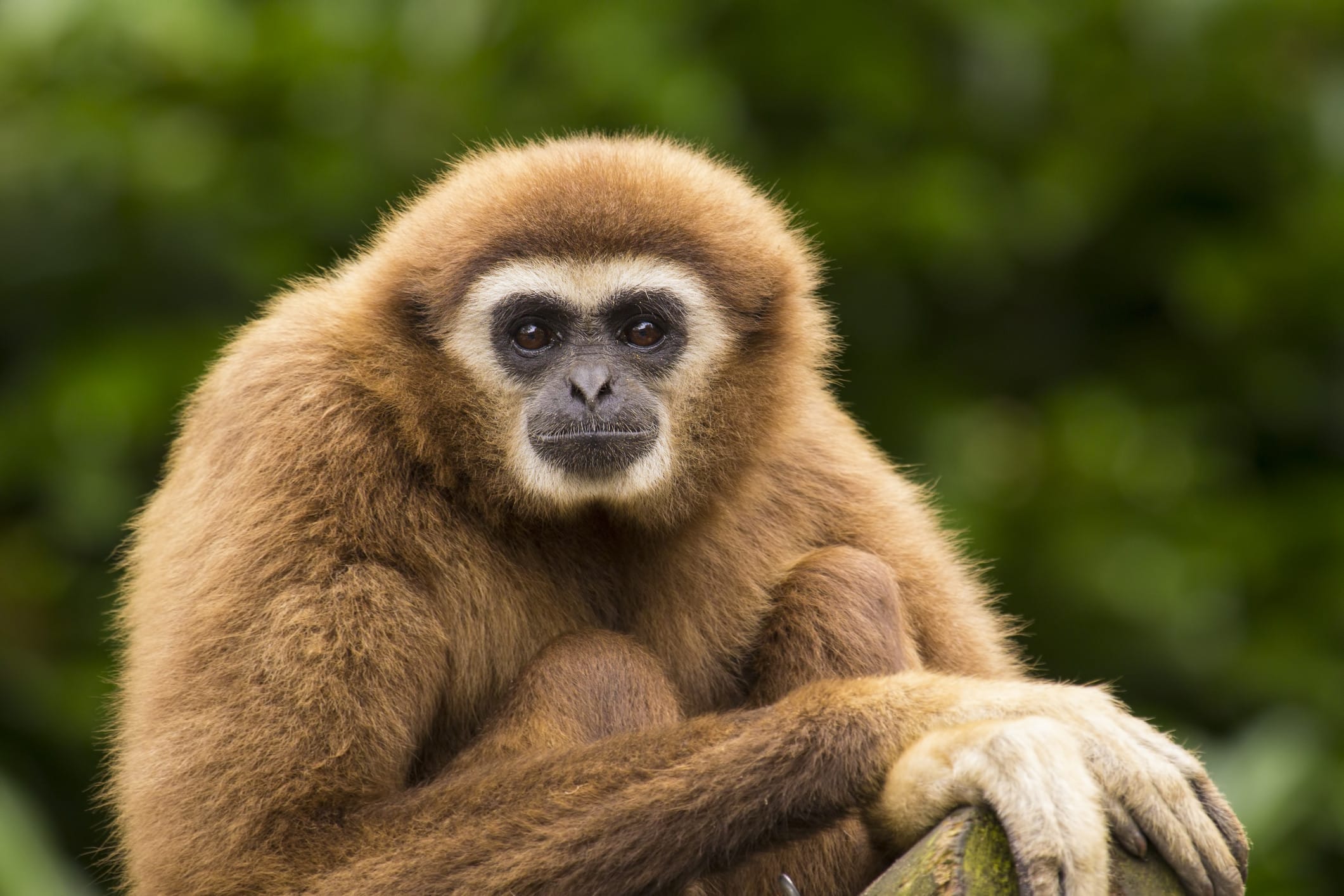 De gibbon is familie van de mensapen, maar in tegenstelling tot de gorilla en de orang-oetan loopt ze rechtop. Er bestaan veertien soorten, die in kleine monogame familiegroepen van twee tot zes leden leven. Met handen die zo gevormd zijn dat ze zich gemakkelijk slingerend langs takken voort kunnen bewegen, leven gibbons hoog in de bomen. In totaal zijn er nog zo’n 79.000 exemplaren in Zuidoost-Azië. Enkele soorten worden met uitsterven bedreigd.