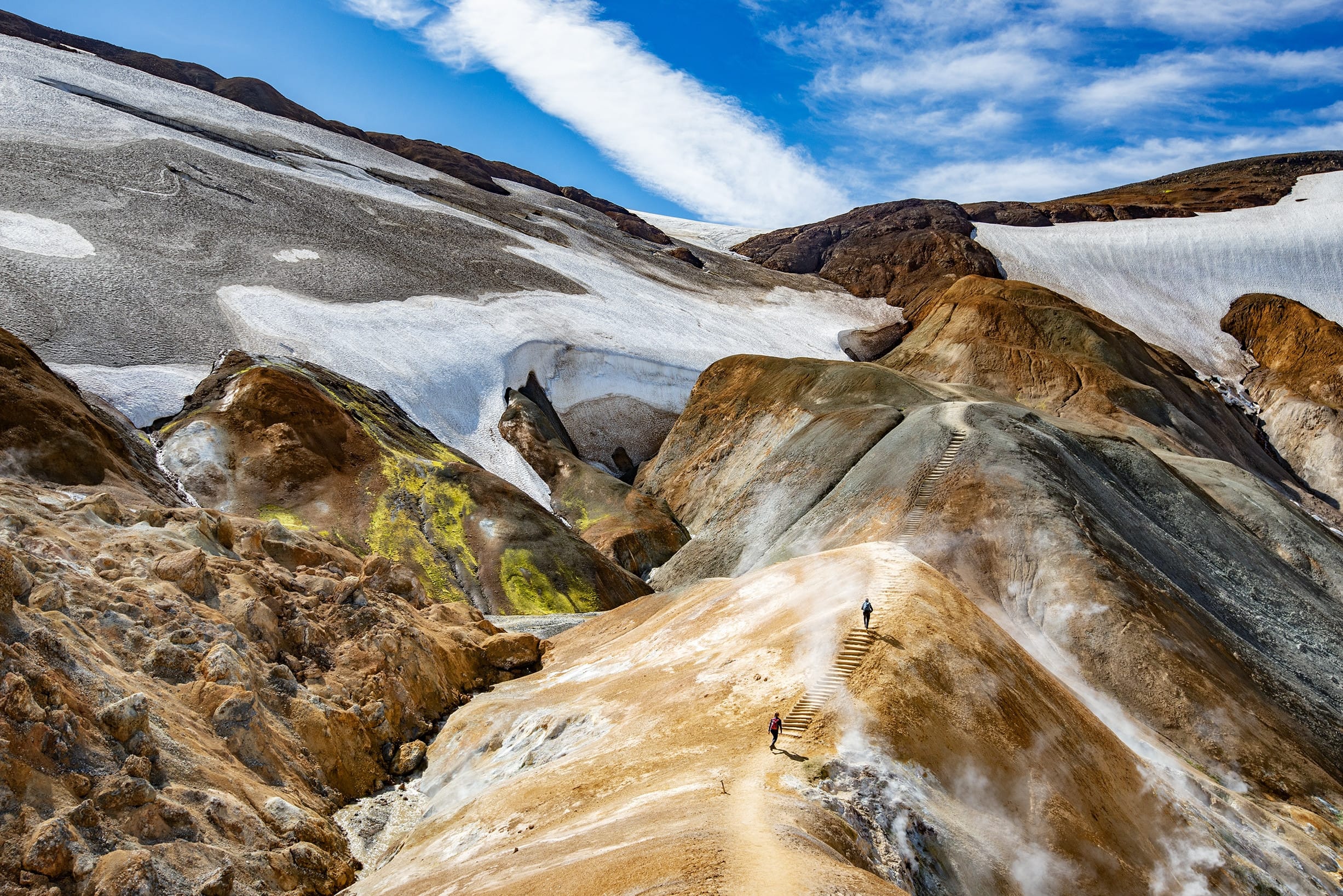 Esther vertelt: 'Je kunt bij Kerlingarfjöll, een berggebied in het binnenland van IJsland, alleen per 4×4-voertuig komen, waardoor het niet overspoeld is door toeristen. Je kunt korte wandelingen, maar ook meerdaagse pittige hikes maken. Je hebt hier constant het wow-effect.'