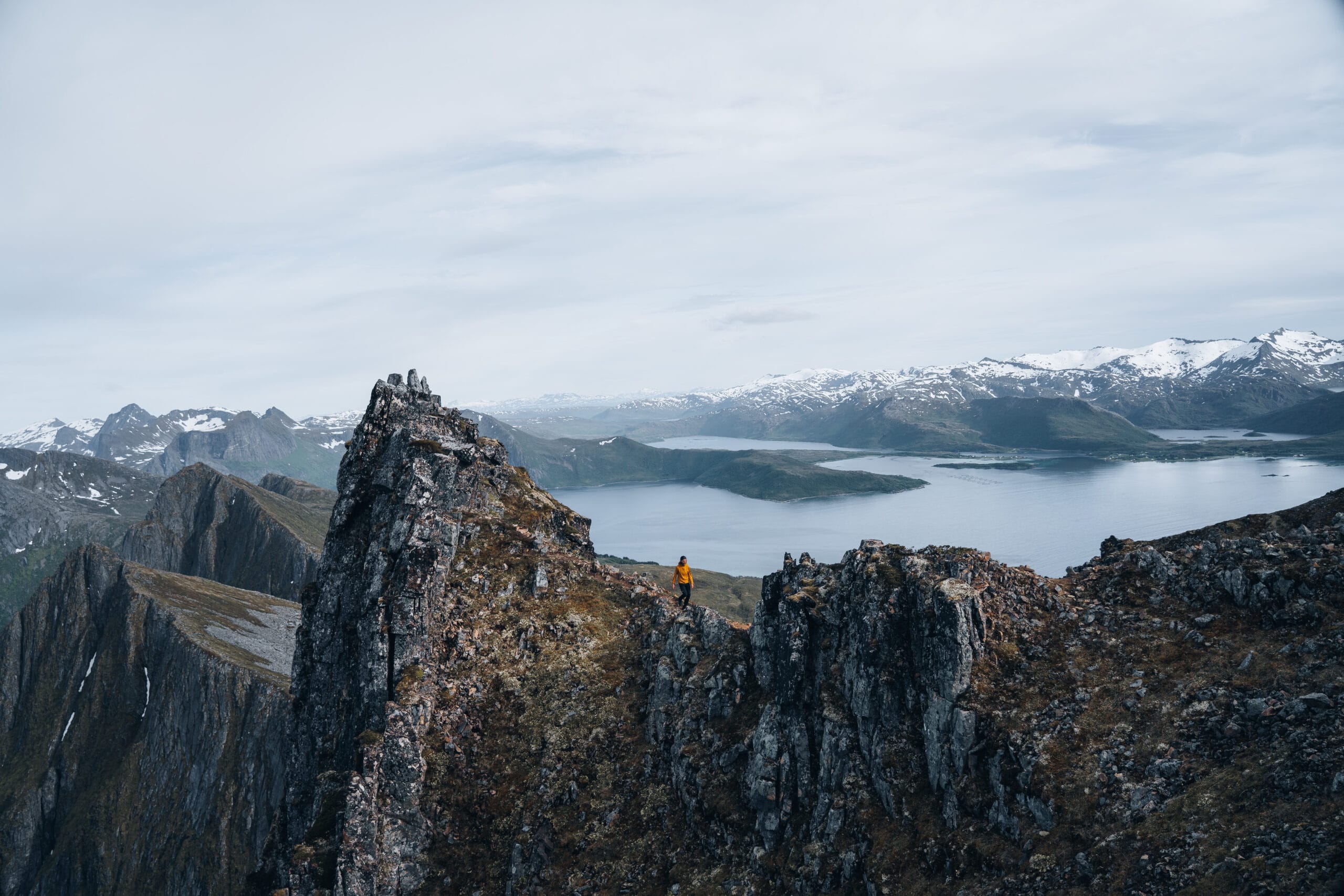 Jacobien vertelt: 'Dit is de Husfjellet-piek (631 meter) die je vanuit Skaland op het eiland Senja in Noorwegen kunt beklimmen. De adembenemende hike is goed te doen voor het overgrote deel, net onder de top wordt het wat avontuurlijk. Het waanzinnige uitzicht maakt het zeker de moeite waard.'