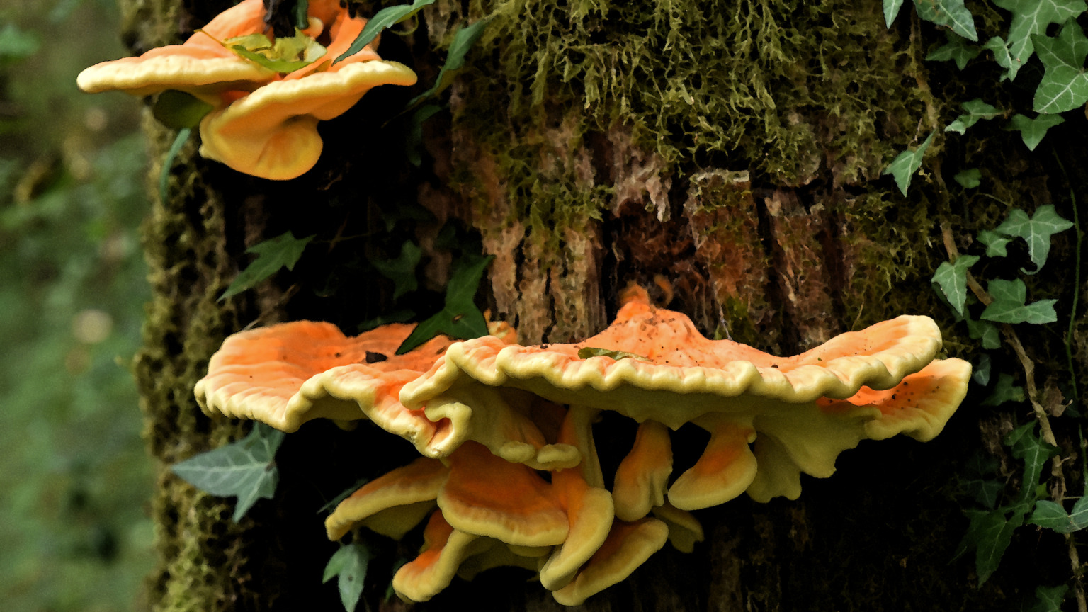 - Zwavelzwam (Laetiporus sulphureus): staat ook bekend als ‘kip van het bos’ vanwege zijn heldere gele tot oranje kleur en zijn vlezige textuur die, wanneer gekookt, doet denken aan kippenvlees. Deze paddenstoel groeit in grote, opvallende plakkaten op bomen, vooral op eiken. De jonge, zachte randen van de zwavelzwam zijn eetbaar en worden vaak gebruikt in culinaire gerechten vanwege hun aangename smaak en textuur. Het is echter belangrijk om alleen de jonge delen te consumeren, aangezien oudere delen taai en bitter kunnen worden.