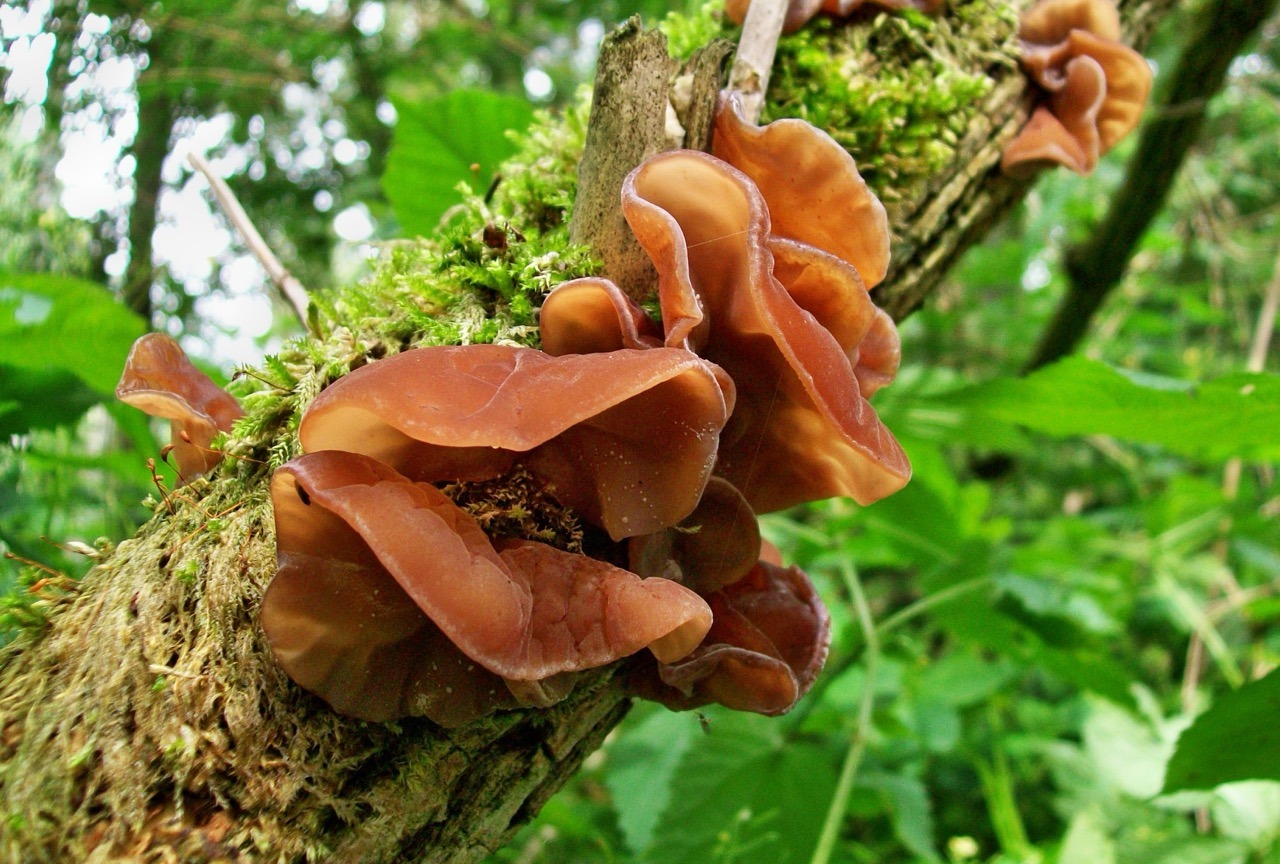 - Het judasoor (Auricularia auricula-judae): opvallende, geleiachtige paddenstoel met een vorm die doet denken aan een oor. De kleur varieert van rozebruin tot donkerbruin. Deze paddenstoel groeit voornamelijk op dode takken van vlierstruiken. Het judasoor wordt vooral gewaardeerd in de Aziatische keuken.