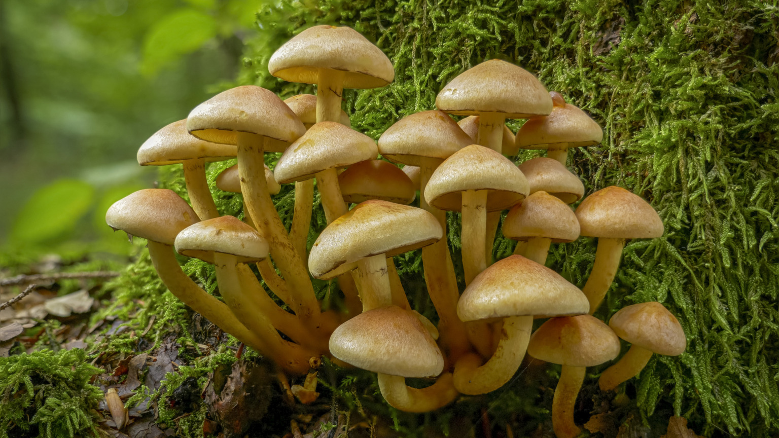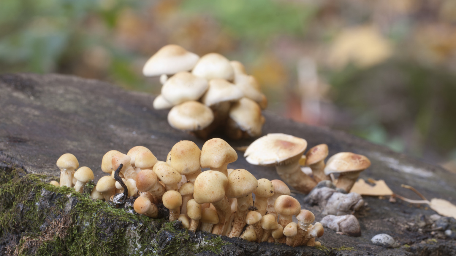 - Honingzwam (Armillaria mellea): heeft een goudbruine tot honingkleurige hoed en groeit vaak in dichte trossen op bomen en houtachtige substraten. Deze paddenstoel staat bekend om zijn vermogen om bomen en hout te koloniseren, wat soms tot hun verval kan leiden. Jonge exemplaren van de honingzwam zijn eetbaar en hebben een milde, zoete smaak.