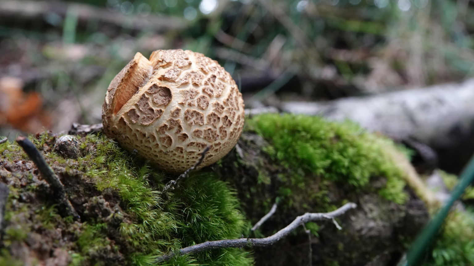 - Aardappelbovist (Scleroderma citrinum): bolvormige, leerachtige paddenstoel met een ruwe, geelbruine buitenkant en een donker, sporenrijk binnenste.