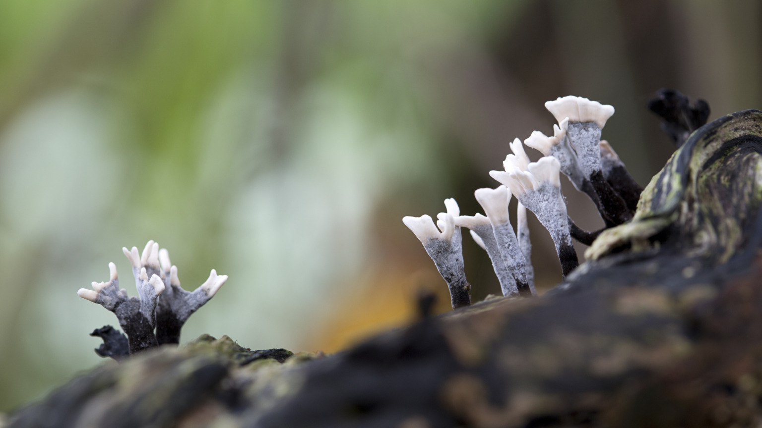 - Geweizwam (Xylaria hypoxylon): heeft een opvallende vorm die lijkt op de vertakkingen van een gewei en is vaak zwart of donkerbruin van kleur.