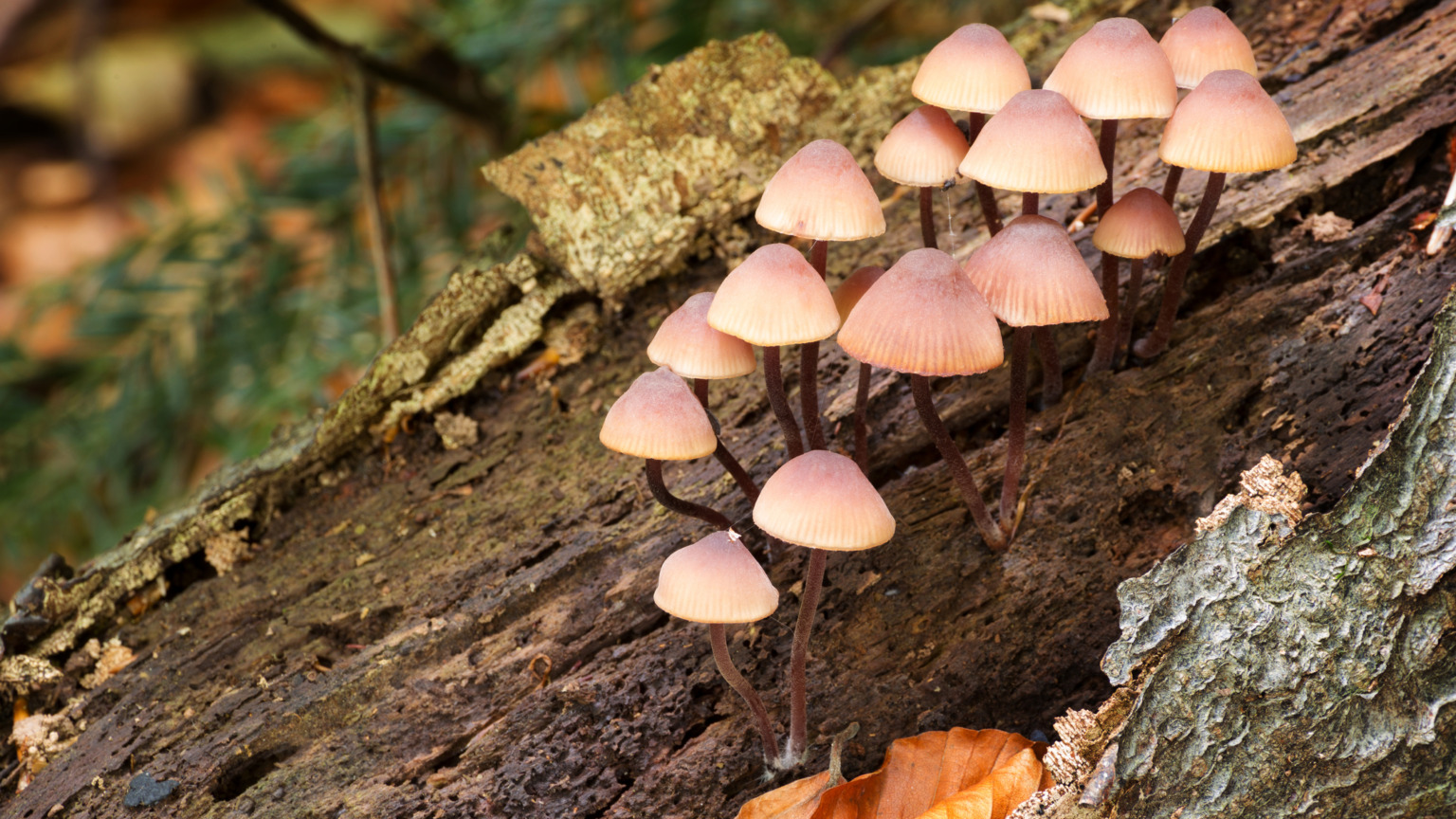 - Dennenmycena (Mycena seynesii): kleine paddenstoel met een bruinachtige hoed en steel, en groeit vaak in groepen op dennenkegels.