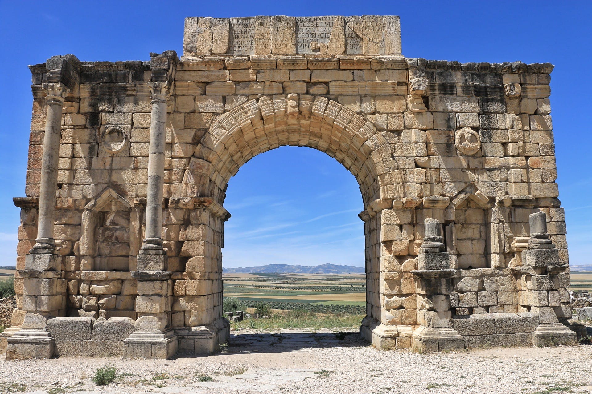 Een triomfboog bij Volubilis in Marokko (Foto: Ahmed.magdy, Wikimedia Commons)