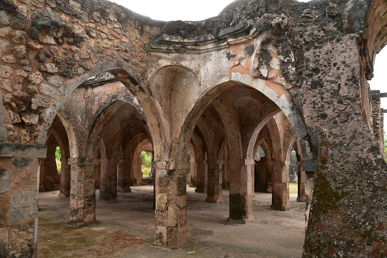 De overblijfselen van de moskee van Kilwa Kisiwani (Foto: Richard Mortel, Wikimedia Commons)