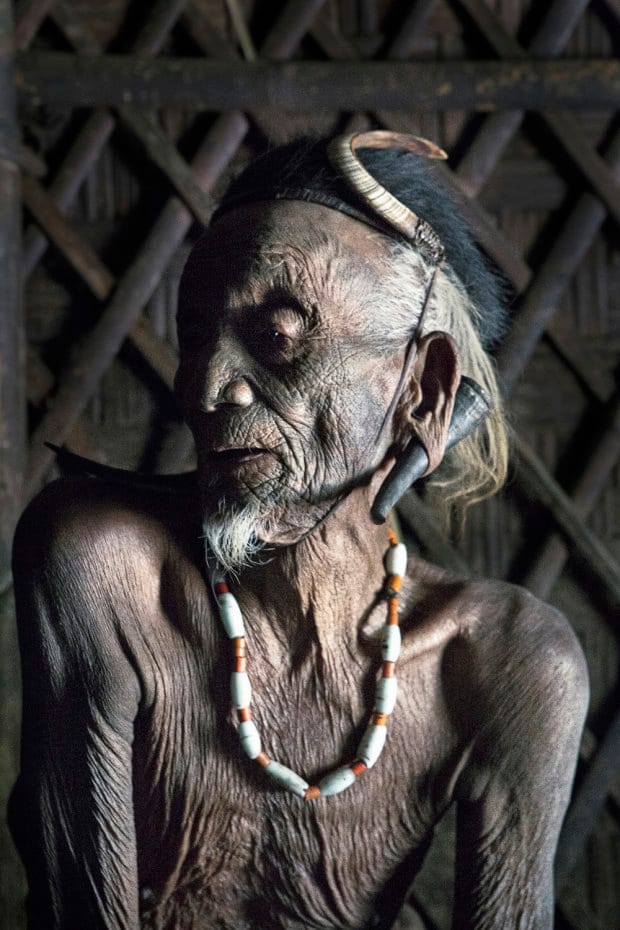 Penji Shakam, 97 jaar oud, uit Longwa (Foto: Peter Bos)