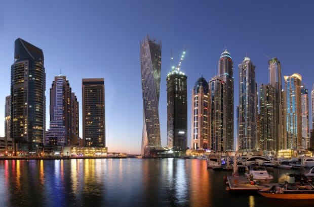 De skyline van Dubai als de schemer valt (Foto: Reisreporter adelheid)