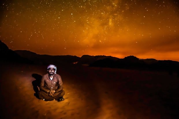 "Zoveel sterren en sterrenklusters zijn er te zien boven de woestijn van Wadi Rum. Je wilt je matje buiten leggen en geen oog dichtdoen in de nacht."