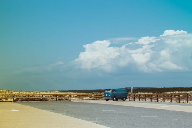 Ondertussen is de autoschoonmaker van het verhuurbedrijf, die ons even daarvoor nog uitgezwaaid had, aan komen rennen en hij schiet ons te hulp. In rap Portugees staat hij de agenten met veel gebaren te woord. Hij wijst naar het verhuurbedrijf aan de overkant van de straat, naar ons en naar zichzelf. Het ziet eruit alsof hij zegt dat wij zojuist de huurauto hebben opgehaald bij zijn bedrijf en dat hij ons op weg heeft geholpen en dat het misschien niet zo handig was wat ik deed, maar dat wij ook maar toeristen zijn die de omgeving hier niet kennen. Wat hij ook gezegd heeft, het heeft wel effect. Ik krijg de autopapieren en mijn rijbewijs terug, mag de auto keren en via de goede kant de straat uit rijden. De agenten lopen weer door. De schoonmaker steekt zijn duim op terwijl we wegrijden en ik naar hem. Met de schrik nog in mijn lijf, het zweet op mijn rug, maar zonder bekeuring kunnen we op weg naar… de benzinepomp. Want we kregen de auto ‘leeg’ mee.