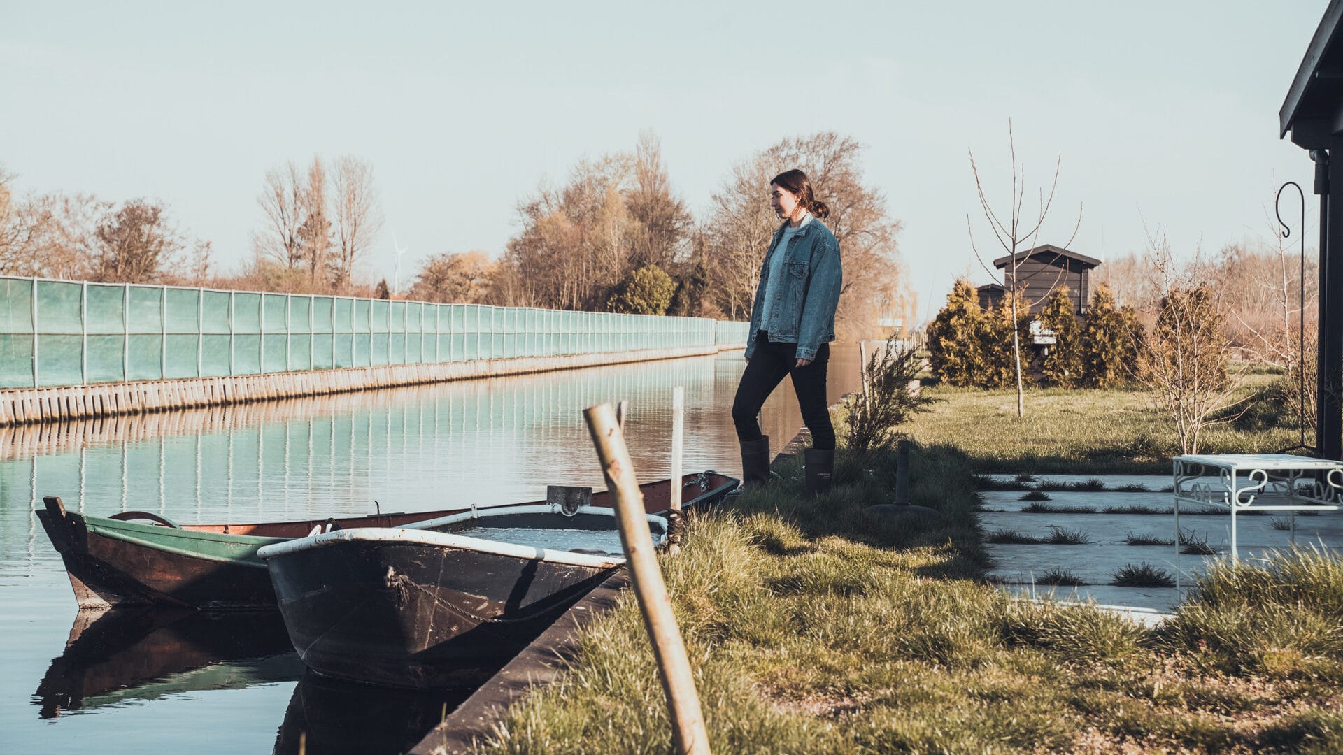 Het erf is omringd door water. Vaar met een bootje naar de molens. Foto: Stijn Hoekstra