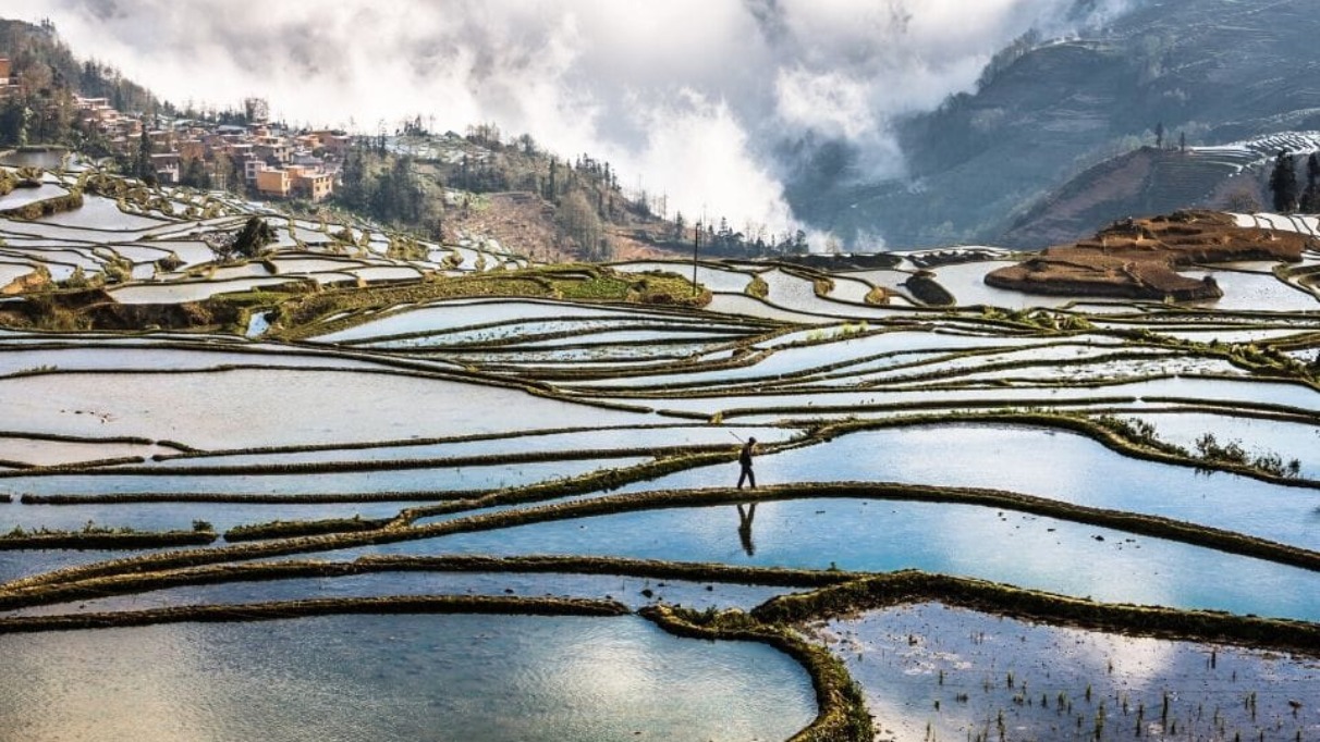 ‘Als iemand mij vraagt waaraan ik de beste reisherinneringen heb, is het antwoord vaak China. In februari 2017 heb ik samen met mijn man een rondreis gemaakt door de provincie Yunnan, in het zuiden van China. Die beroemde rijstterrassen, die wilde ik zeker één keer in mijn leven gezien hebben. In februari en maart staan deze terrassen onder water, waardoor de luchten op een spectaculaire manier in het water weerspiegeld worden. Afhankelijk van zon, mist, tijdstip en je standpunt kleuren de rijstterrassen verschillende op.