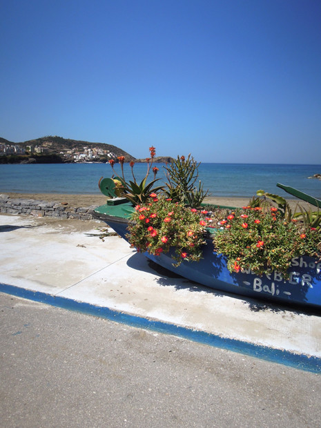 We volgen het ritme van de kinderen. Dan is het voor hen relaxt en voor ons dus ook. De ochtenden blijven we meestal bij het appartement. Na het middagslaapje dalen we de berg af, naar een van de mooie baaien, voor strand, zon en een lekker hapje in een taverne. De opzet van de meeste strandjes op Kreta is heel kneuterig en gezellig, een mooie baai met wat bootjes, een zandstrandje en een stoep erlangs. Langs de stoep en in de taverne’s zijn de heerlijkste salades, hapjes en visjes te krijgen. We krijgen vaak raki en fruit van het huis als toetje! Wellicht is dat laatste alleen voorbehouden aan twee blonde zussen…