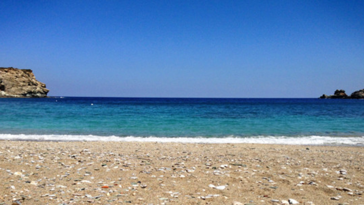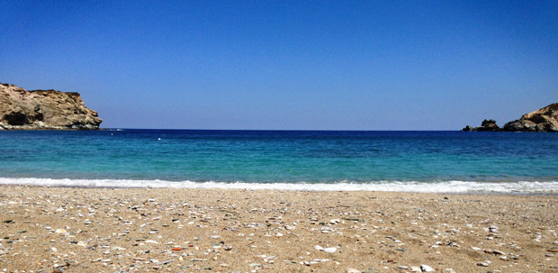 Na een half uur rijden heeft de oudste er al genoeg van. Gelukkig blijkt dan dat we per ongeluk alweer op de terugweg zijn en belanden we zo in een baaitje naast Agia Pelagia in Ligaria. Ach, waarom ook het hele eiland oversteken, als er zo veel mooie strandjes vlakbij zijn!
