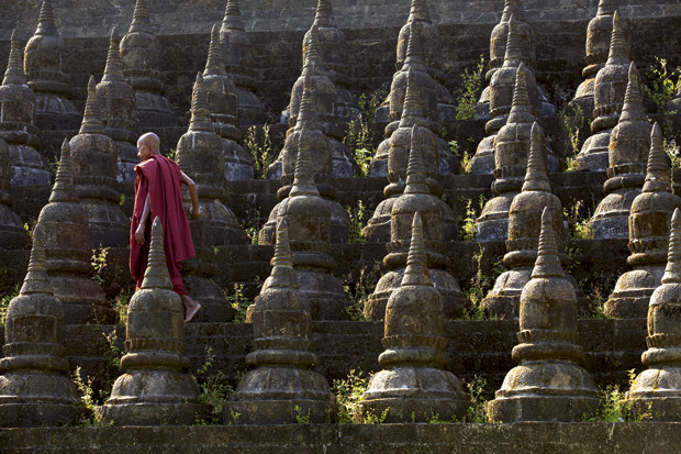 Het dak van de Koe-Thaung in Mrauk U tempel telt 108 stoepa’s. Dat is niet geheel toevallig: ‘108’ is binnen het boeddhisme een heilig getal.