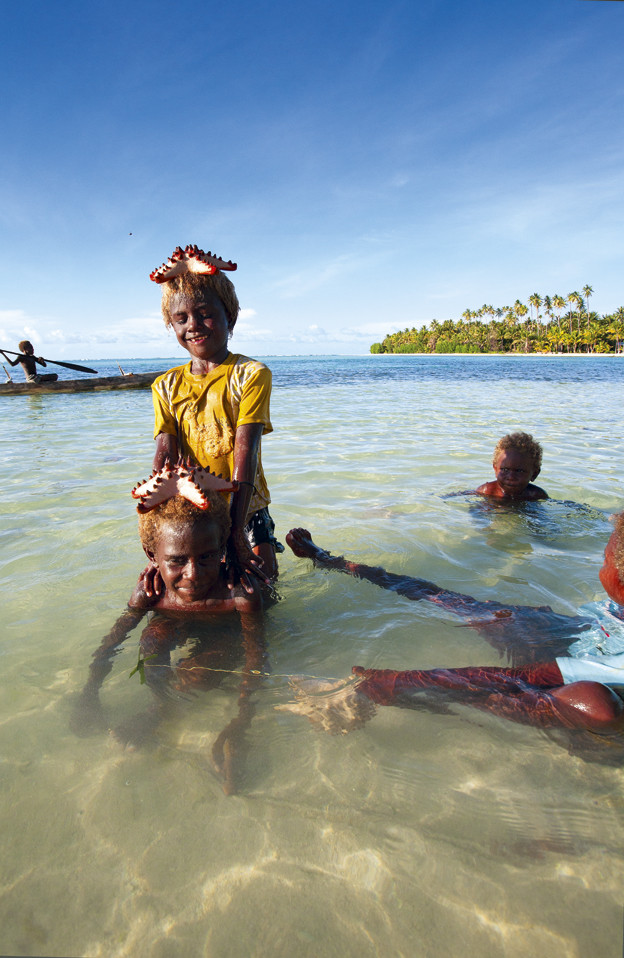 Op het eiland Tsoi Lik (New Ireland) spelen de kinderen van de familie Robinson met de vele enorme zeesterren die hier in het ondiepe water liggen. De wateren rondom Papoea-Nieuw-Guinea kennen de grootste biodiversiteit ter wereld. Alleen al dit rif herbergt met zijn 178 koraalsoorten meer diversiteit dan de gehele Cariben.