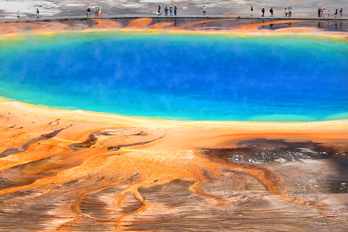 Een van de bekendste meren van de Verenigde Staten is ook gelijk de meest kleurrijke. Bij Grand Prismatic Spring in Yellowstone National Park spot je alle kleuren van de regenboog. Dit komt door de gepigmenteerde bacteriën die in deze warmwaterbron leven.