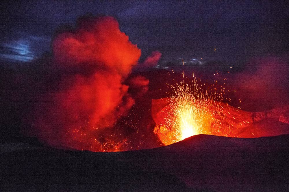 Vulkaaneiland Stromboli is een van de zeven Eolische Eilanden, ten noorden van Sicilië. Voortdurend vinden er kleine erupties plaats, waarbij de gloeiendhete lava metershoog de lucht in wordt gespoten. Twintig jaar geleden was dit de eerste vulkaan die ik beklom. Om de brandende zon voor te zijn vertrokken we heel vroeg in de ochtend. We hadden geen gids en ik kan me nog herinneren dat we af en toe moesten zoeken hoe en waar we konden lopen. Soms was het kleuteren met handen en voeten. Na vier uur klimmen kwamen we aan. Je staat niet direct aan de kraterrand, maar ziet hoe de lava iets verderop elke twintig minuten naar boven wordt gespoten. Het ideale moment om boven aan te komen is tegen zonsondergang, dan komt het vuurwerk het best tot zijn recht. Dat geldt uiteraard voor alle vulkanen. Tegenwoordig is een gids verplicht. De hike is geliefd, getuige de beelden die ik heb gezien van treintjes mensen die naar boven lopen. Desalniettemin is de tocht nog steeds de moeite waard.