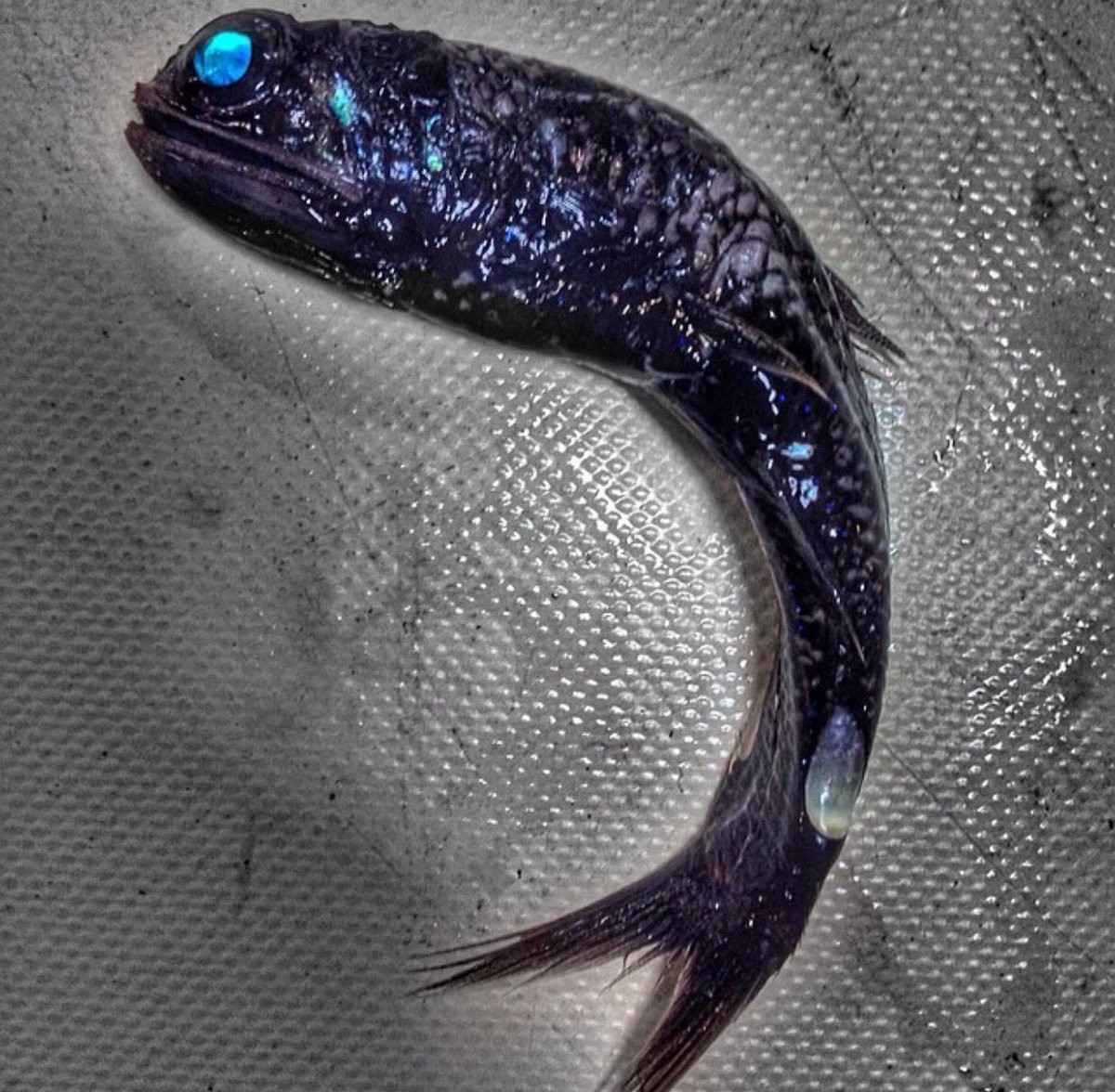 Deze ‘geesthaai’ behoort tot de draakvissen en heeft lichtgevende ogen (Foto: Roman Fedortsov)