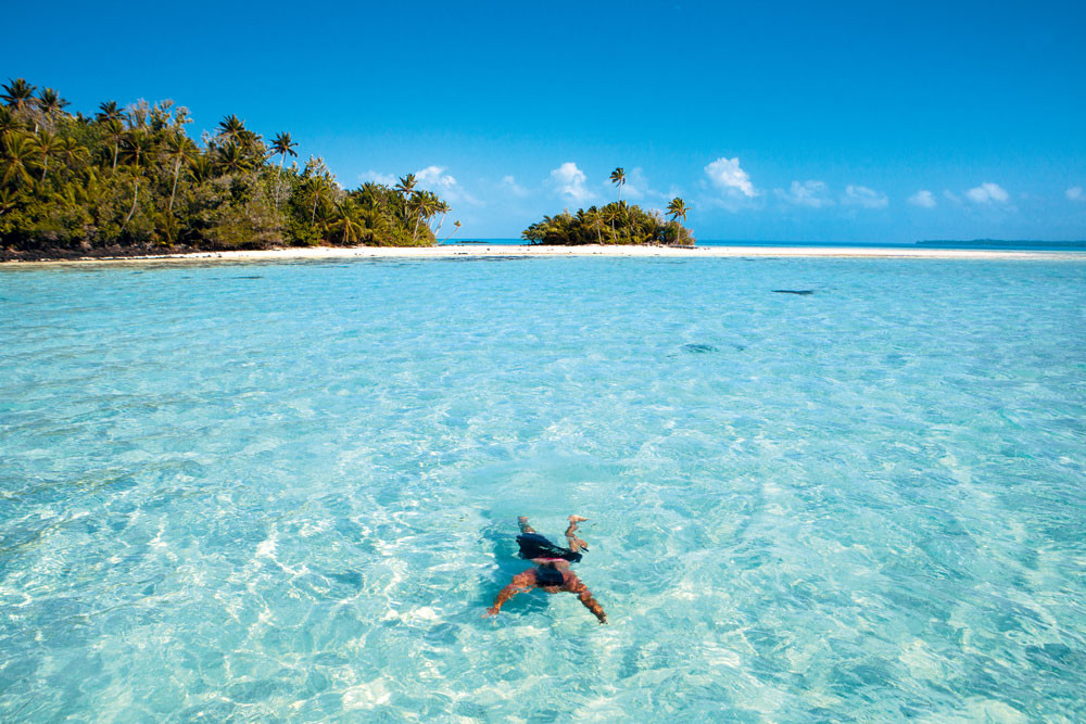 Heldere lucht en helder water bij Aitutaki op de Cookeilanden (Foto: Louise ten Have © Columbus Travel)