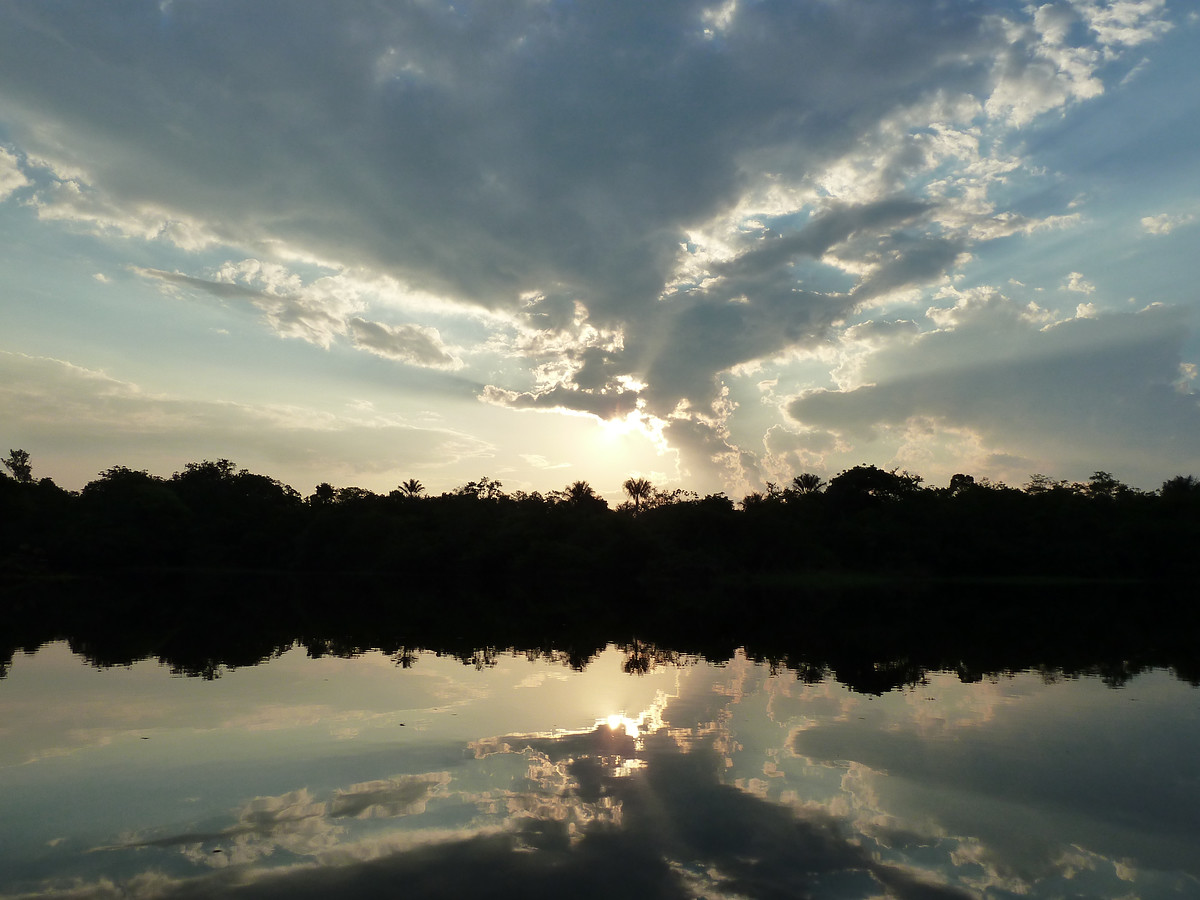 De zon gaat prachtig onder boven de een van de vele rivieren in het Amazonegebied (Foto: Reisreporter omeLou)