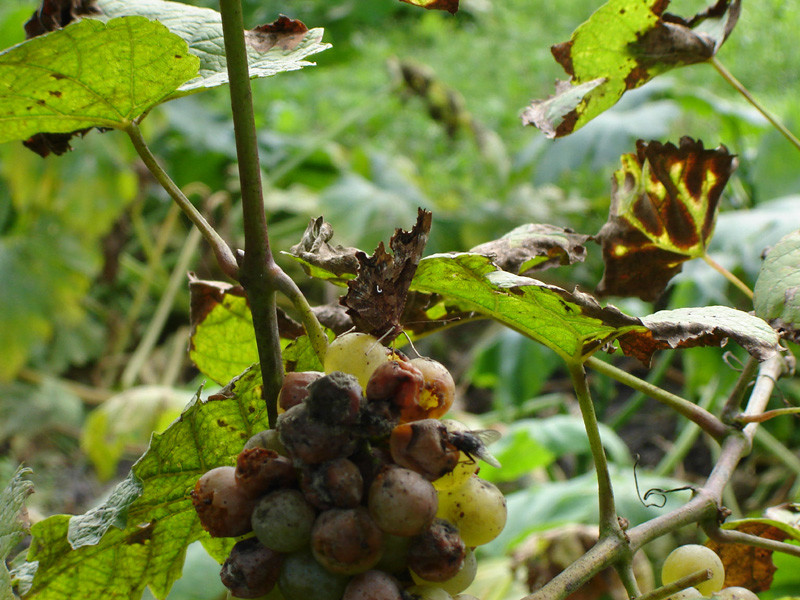 Rechts op de druiven zit een vlieg. Maar spot je ook het andere insect? (Foto: Dodo-Bird, Flickr)