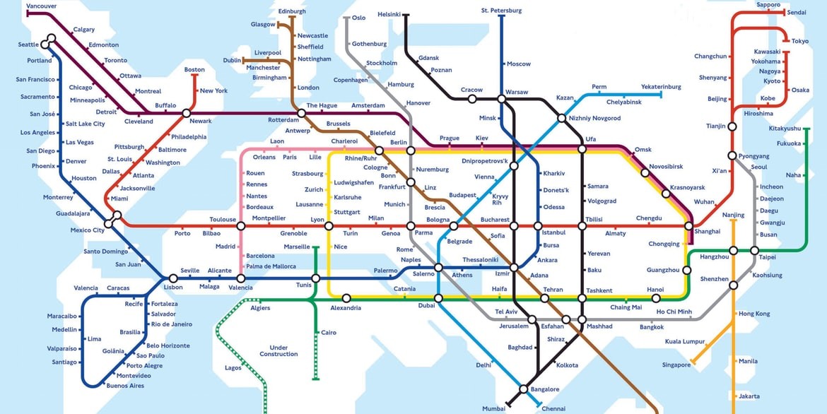 De Britse tekenaar Mark Ovenden schetste in 2003 een fictieve wereld die verbonden was door een metronetwerk. Grote wereldsteden vormden de haltes. Hij had waarschijnlijk niet kunnen voorspellen dat zijn fantastievolle tekening ooit werkelijkheid zou worden. Het plan is namelijk overgenomen door het Amerikaanse bedrijf Hyperloop One, dat zichzelf ten doel stelt om de wereld te verbinden door middel van futuristische treinbuizen. De eerste tests vonden al plaats, in de woestijn in Nevada. De trajecten moeten over drie tot vier jaar daadwerkelijk in productie gaan. Het bedrijf focust zich eerst op regionale netwerken om vervolgens alle buizen aan elkaar te koppelen en zo een wereldwijd netwerk te creëren.