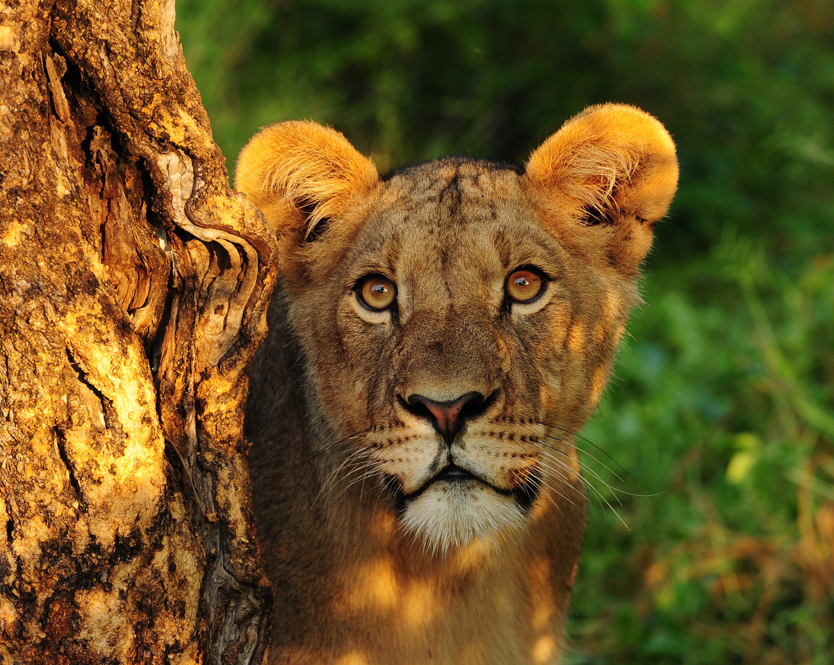 Deze leeuw komt nieuwsgierig om de hoek kijken in Kalahari NP (Foto: Reisreporter Jan10e)