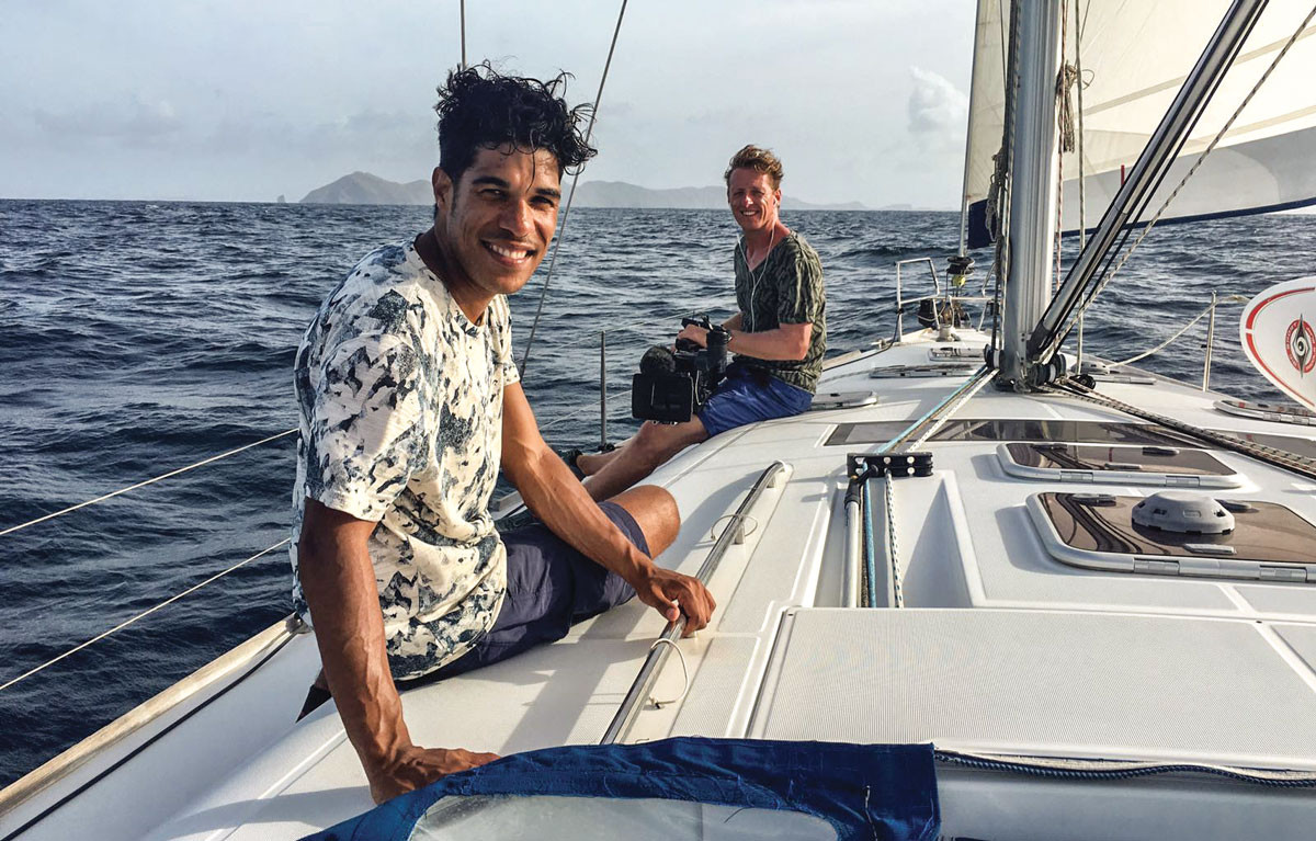 Maurice aan het zeilen over de Caribische Zee (Foto: © BNN-VARA)