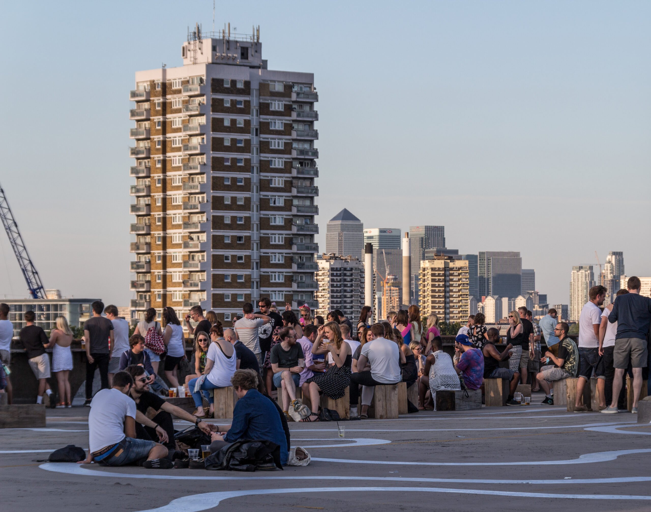 Áls de zon schijnt zoeken Londenaren massaal het dak op. Een van de hipste adresjes is Frank’s Café. Om er te komen volg je artistieke figuren naar de bovenste verdieping van een parkeergarage in Peckham.