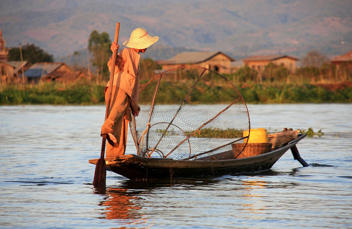Een heel bekend beeld van Myanmar, de vissers op het Inle meer ( Foto: Reisreporter Lione Kolsteren)