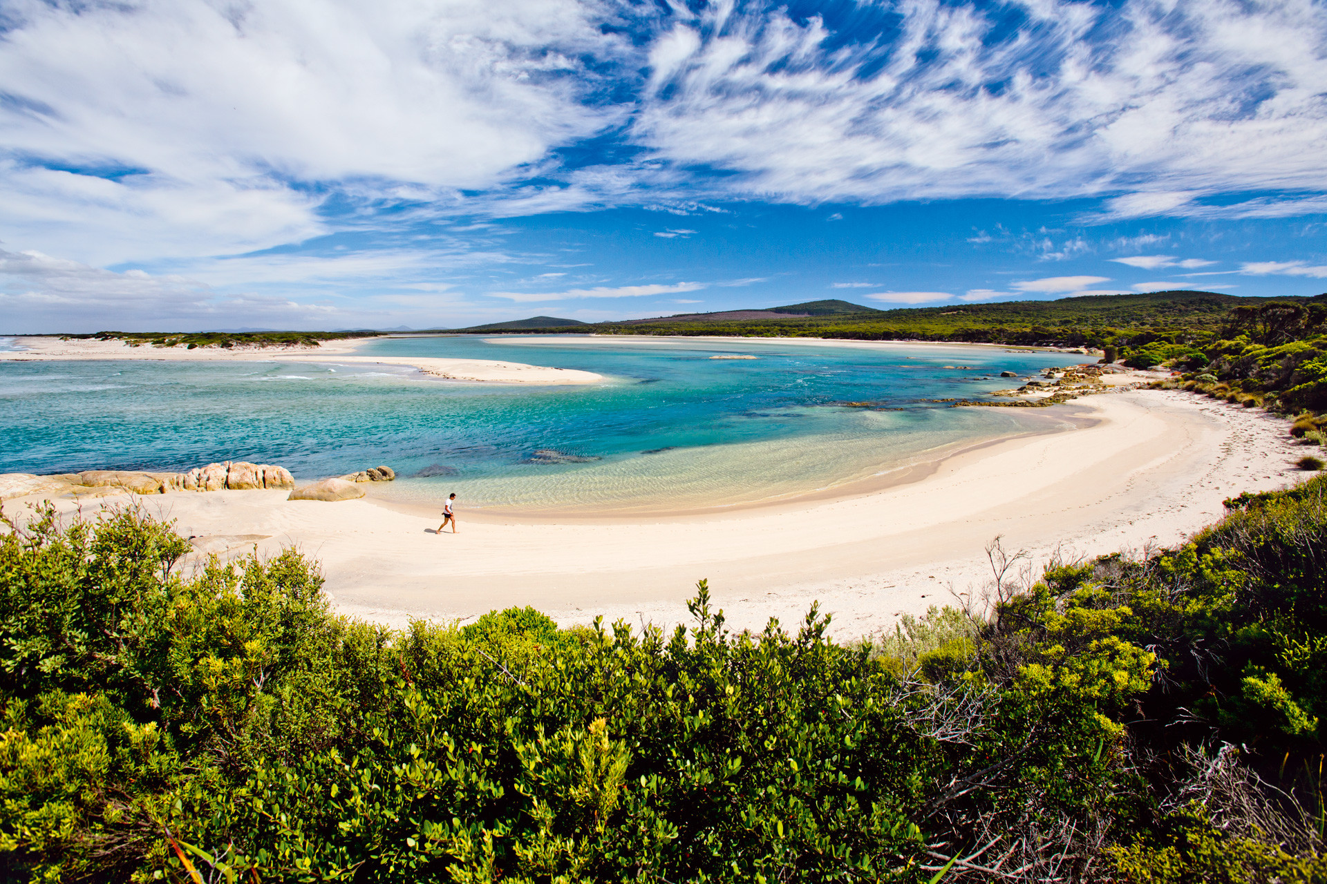 Wandel over je eigen privé-strand in Tasmanië, Australië. (Fotograaf Louise ten Have, © Columbus Travel)