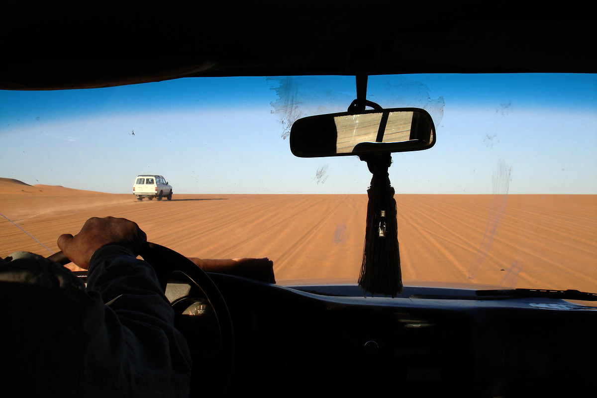 Vergis je niet; rijden in de woestijn vergt een scherpe concentratie (Foto: Reisreporter suzannehulsbos)