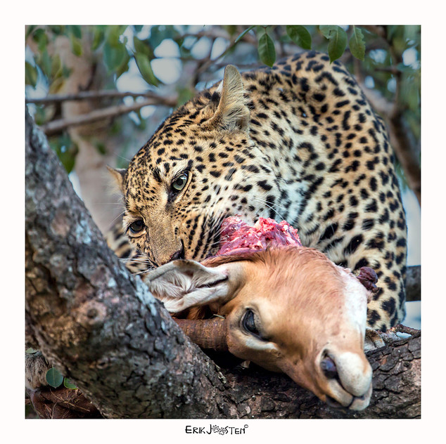 Net voor zonsondergang werd Erik getrakteerd op een luipaard en een Impala net na een attack. (Foto: Columbus Reisreporter deerik)