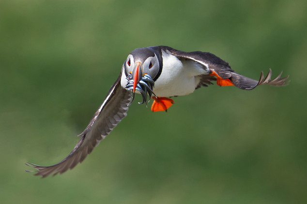 Een mooi kiekje van een papegaaiduiker met een heerlijke visvangst (Foto: Columbus Reisreporter hbplaatjes)